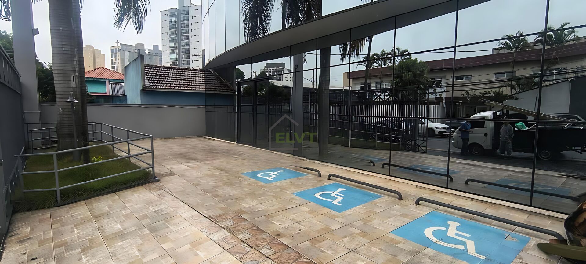 O imóvel possui copa, mezanino, recepção, salas com ar-condicionado, sala de CPD, salões amplos e banheiros distribuídos em todos os pavimentos, incluindo banheiro PCD. No subsolo, oferece garagem com entrada independente pela rua de trás, 13 vagas demarcadas, portão automático, porta de enrolar, acesso independente, banheiro e pequeno depósito.